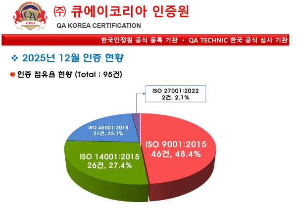 [큐에이코리아인증원] 2025년 12월 인증 실적 현황