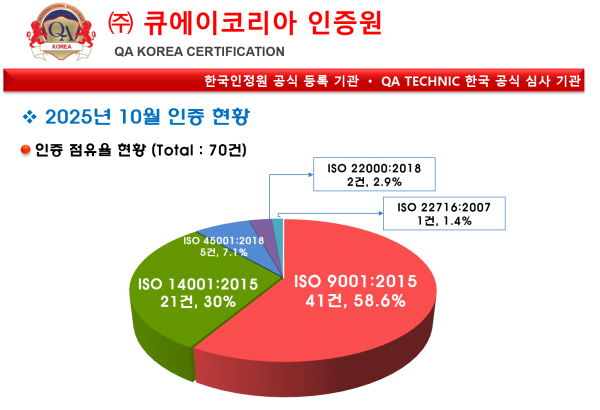 [큐에이코리아인증원] 2025년 10월 인증 실적 현황
