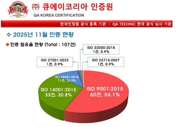 [큐에이코리아인증원] 2025년 11월 인증 실적 현황