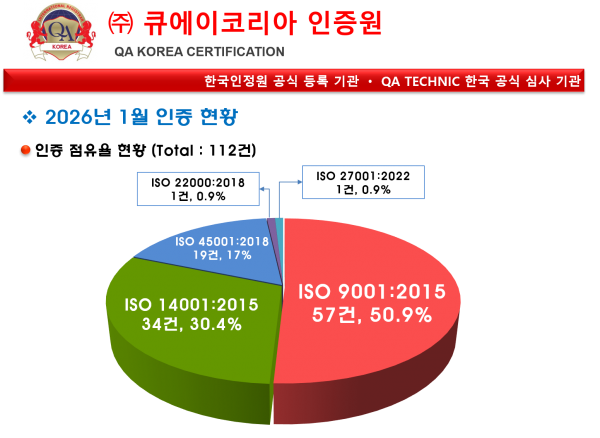 [큐에이코리아인증원] 2026년 1월 인증 실적 현황